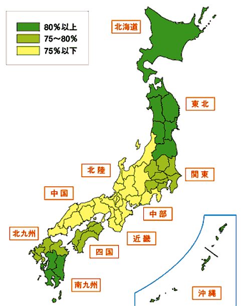 これを見ると、ざっくりと東日本と西日本で分かれてますね。